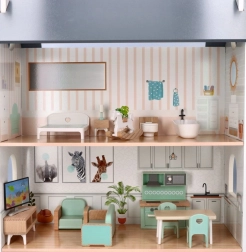 Das Puppenhaus wurde entwickelt, um kreatives und fantasievolles Spielen zu unterstützen. Es besteht aus zwei Etagen, auf denen sich Kinder beim Erstellen eigener Geschichten und Szenarien vergnügen können. Das Holzmaterial sorgt für Langlebigkeit und Nachhaltigkeit.