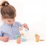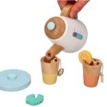 Das Set ist mit realistischen Details ausgestattet, wie Zitronenscheiben, Teebeuteln und pastellfarbenen Farben, die die Aufmerksamkeit der Kleinen auf sich ziehen.