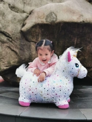 Verwandeln Sie jeden Kindernachmittag in einen magischen Ritt. Das aufblasbare Hüpf-Einhorn mit flauschigem Bezug bietet eine sichere und spaßige Aktivität für kleine Hüpfer – die weiche Oberfläche fühlt sich angenehm an und der aufblasbare Kern sorgt für Federung und Stabilität. Dank der Sitzhöhe von 28 cm ist das Aufsitzen auch für kleinere Kinder bequem.