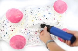 Weiß, mehrfarbige Sternchen, rosafarbene Details