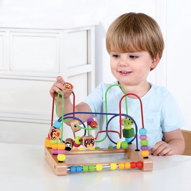 Das hölzerne Labyrinth mit Tieren ist das ideale Spielzeug für kleine Entdecker ab 18 Monaten. Dank der farbenfrohen Perlen und niedlichen Tierfreunde trainieren Kinder spielerisch die Hand-Auge-Koordination und lernen, Farben und Formen zu erkennen. Das Spielen mit den Perlen unterstützt zugleich die ersten Schritte zum Zählen und fördert auf natürliche Weise das logische Denken.