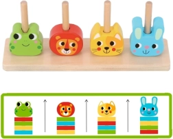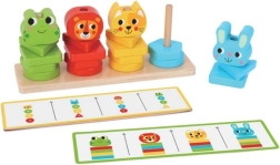 Entdecken Sie ein spielerisches Lernset, bei dem Kinder aus bunten Holzteilen auf Stiften einen Frosch, Löwen, eine Katze und ein Kaninchen zusammensetzen. Enthalten sind Vorlagenkarten zum Nachbauen. Das Spiel fördert hervorragend die Feinmotorik, die Hand-Auge-Koordination, das Erkennen von Formen und Farben sowie die Kreativität. Hergestellt aus FSC®-Holz mit Rücksicht auf die Natur.