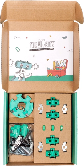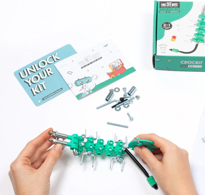 Entdecken Sie das kreative Bauset THE OFF BITS CrocBit, das Sie aus bunten Muttern, Schrauben und geformten Teilen zu drei verschiedenen Modellen zusammensetzen – Krokodil, Echse und Skorpion. Dieses clevere 3-in-1-Set fördert Kreativität, Feinmotorik, logisches Denken und unterstützt die Grundlagen der STEAM-Bildung. Enthalten sind Werkzeuge und Teile, die mit Alltagsgegenständen kompatibel sind – für endlose Baumöglichkeiten.