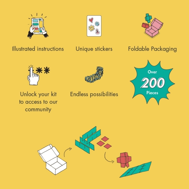 Das Set ermöglicht den Bau von 3 Modellen nach Anleitung – Astronaut SaturnBit, DroidBit und RoverBit – und lässt zugleich Raum für eigene, einzigartige Erfindungen. Die Kompatibilität mit Alltagsgegenständen (z. B. Karton, weitere Schrauben und Kleinteile) erweitert die Spielmöglichkeiten ins Unendliche und fördert die kindliche Vorstellungskraft.