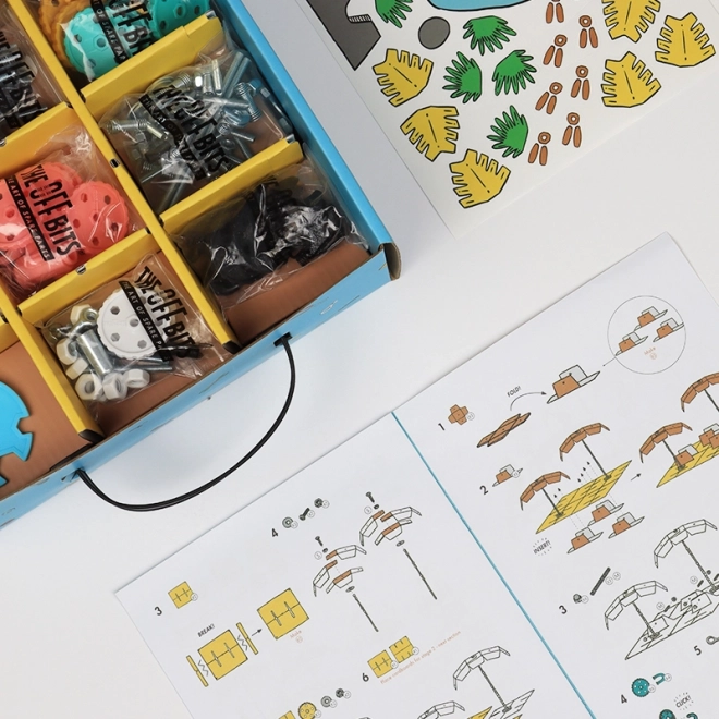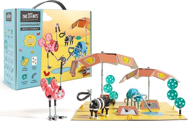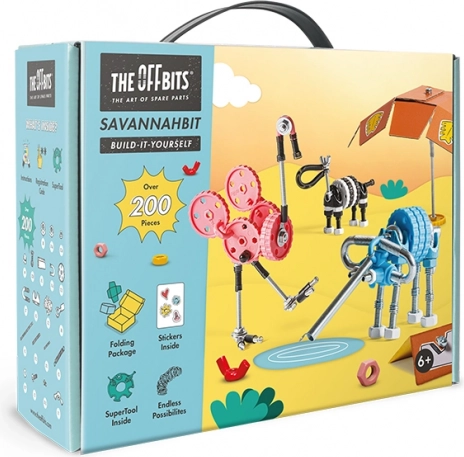OffBits Bausatz SavanaBit ermöglicht es Kindern, eine Welt voller kreativer Möglichkeiten mit mehr als 200 farbigen Teilen zu erschaffen und zu entdecken. Die Kombination aus Muttern, Schrauben und weiteren Komponenten fördert die Entwicklung der Feinmotorik, des räumlichen Vorstellungsvermögens und des logischen Denkens.