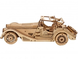 Das Modell besticht durch einen detaillierten Innenraum, öffnende Seitentüren, ein manuell bedienbares Festdach mit Schiebedach und ein funktionierendes Reserverad im Kofferraum. Im Set ist alles enthalten – die Teile sind vorgestanzt und der Zusammenbau gelingt mit der bebilderten Anleitung in 11 Sprachen. Belassen Sie das natürliche Holz oder bemalen Sie das Fahrzeug nach Ihrer Fantasie.