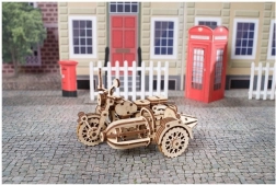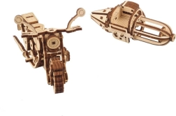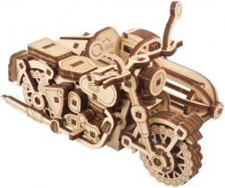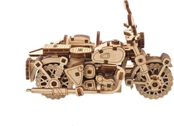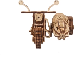 Bauen und bewegen Sie das Motorrad dank einer cleveren Konstruktion aus Zahnrädern und Gummielementen – alles sauber, ganz aus Holz.