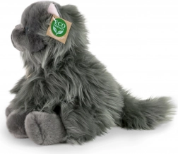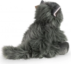 Langer, extra weicher grauer Plüsch, blaue Augen und rosafarbene Öhrchen machen die Katze zu einem treuen Kuschelfreund und einer schönen Dekoration.