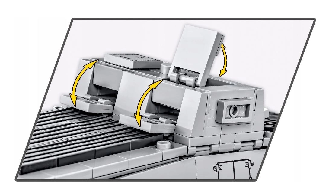 - Funktionale Elemente: öffnende Paneele, funktionsfähige Ketten, drehbare Läufe und detailliertes Interieur.