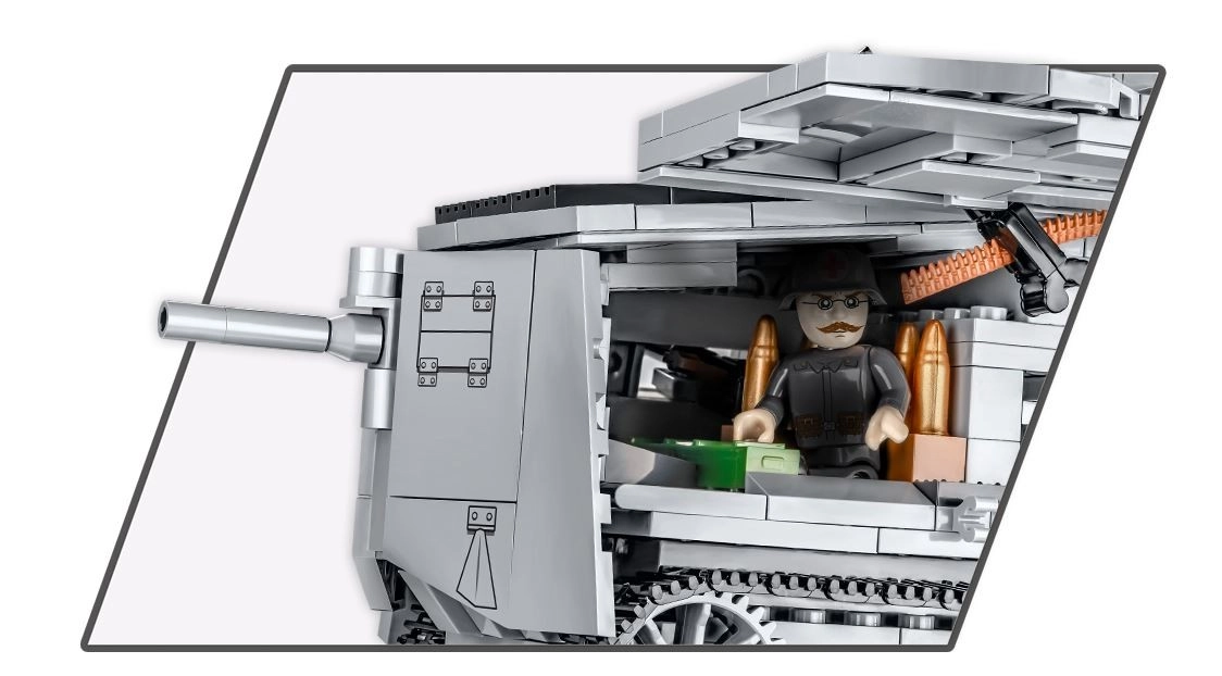Das Modell bietet Bauspaß und wirkt beeindruckend in der Vitrine. Mit beweglichen Ketten, drehbaren Läufen und praktischen Zubehörteilen erstellen Sie mühelos dynamische Szenen. Die Figuren des Sanitäters und des Rettungshundes erinnern an die Helden der Schützengräben und vervollständigen die historische Atmosphäre des Ersten Weltkriegs.