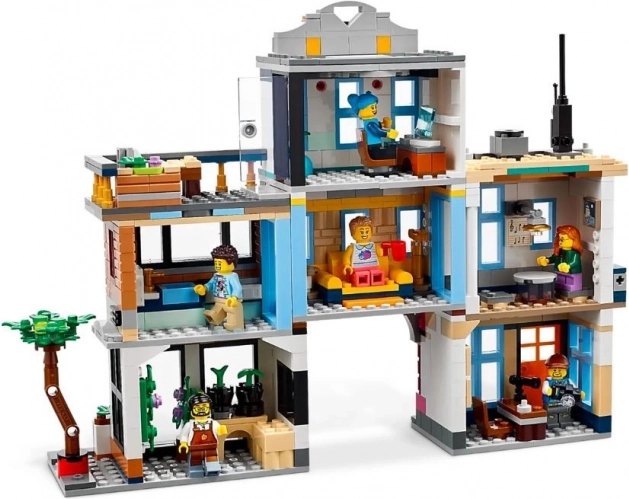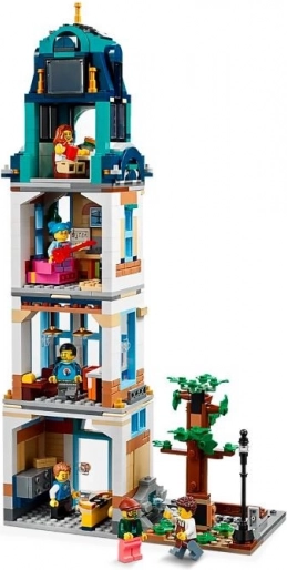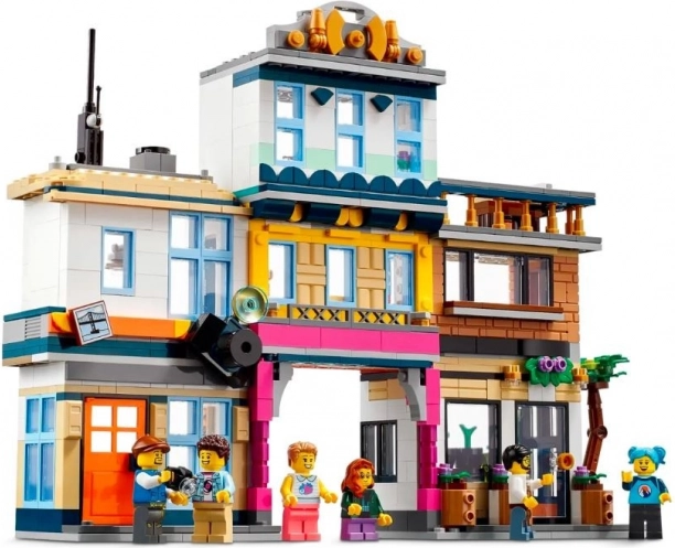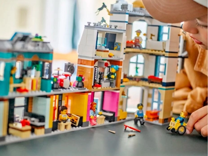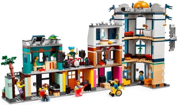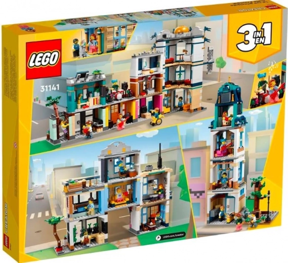 Lego Creator Hauptstraße bietet drei Bauoptionen in einem Set. Baue die Hauptstraße mit vier Gebäuden, verwandle sie in ein vierstöckiges Art-déco-Apartmenthaus mit Park oder in eine Einkaufsstraße mit Studio und Blumenladen. Das Set enthält sechs Minifiguren für fantasievolle Geschichten.