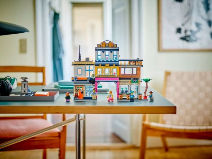 Mit diesem Set können Kinder drei unterschiedliche Stadtszenen bauen – die Hauptstraße, ein Art-déco-Apartment und eine Einkaufsstraße.