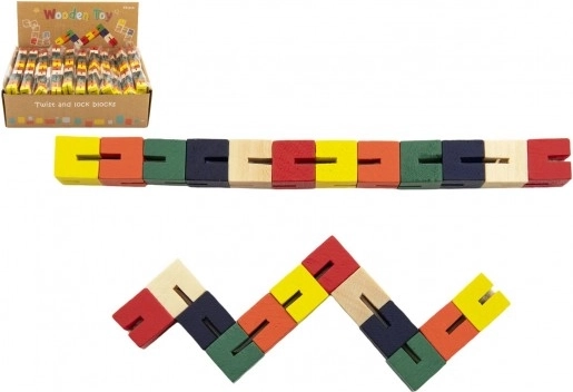 Klassisches Holzpuzzle in Form einer Schlange, ideal zur Förderung der Feinmotorik bei Kindern. Möglichkeiten, verschiedene Formen durch Drehen der Teile zu gestalten.