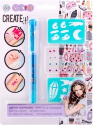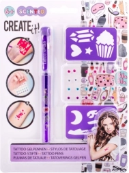 Tätowier-Set mit duftendem Gelstift – das Set enthält einen duftenden Gel-Tätowierstift – 3 verschiedene Farben, selbstklebende glitzernde Steinchen und zwei Schablonen.