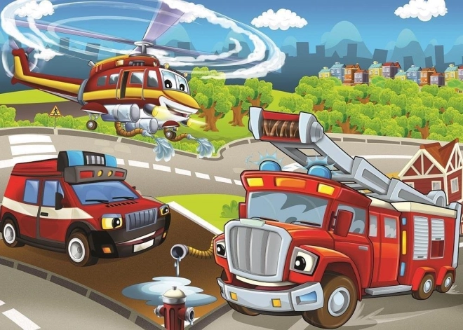 Entdecken Sie doppelten Puzzlespaß mit dem Set Polizei und Feuerwehr. Dank der zwei separaten Motive können Kinder das Puzzeln trainieren und spannende Szenen aus der Welt der Retter erleben. Hochwertiger Druck und stabile Teile garantieren angenehmes Puzzeln und langlebige Nutzung.