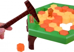Das Spiel fördert strategisches Denken und Feinmotorik. In jeder Runde drehen Sie das Rad, das Ihnen angibt, welche und wie viele Würfel Sie entfernen müssen, ohne dass der Dinosaurier fällt.