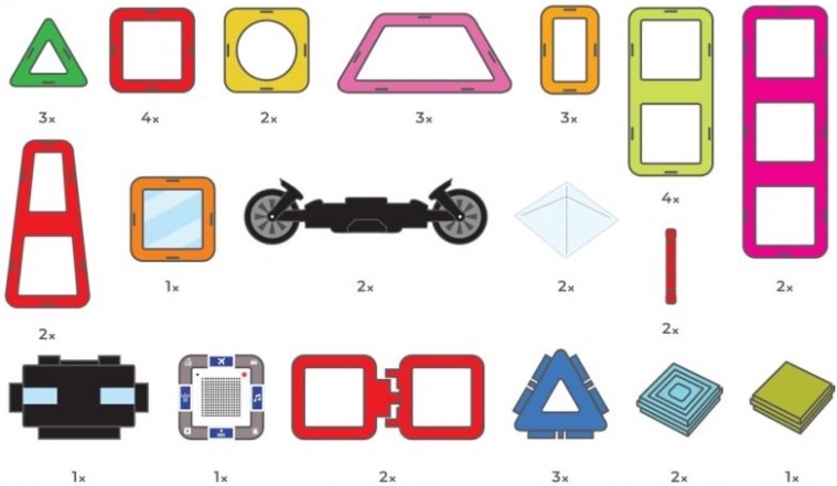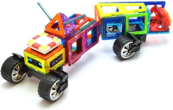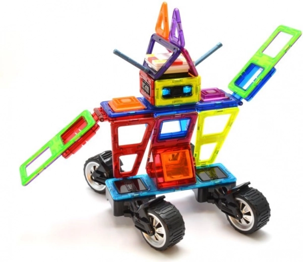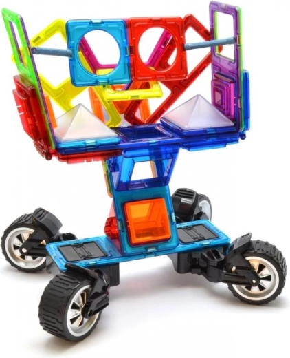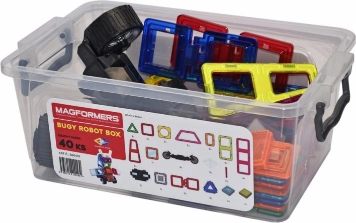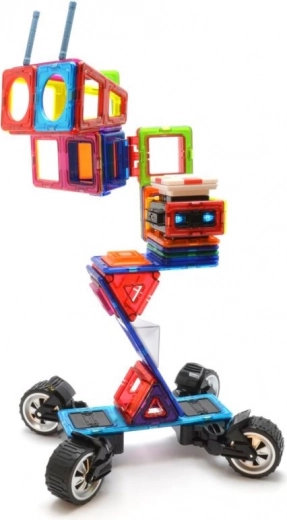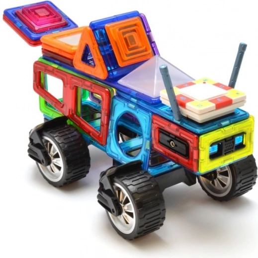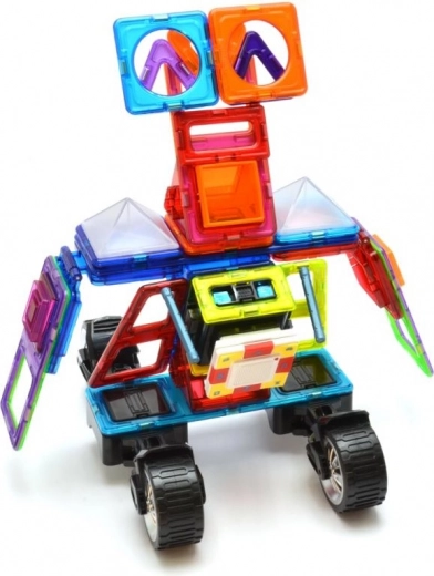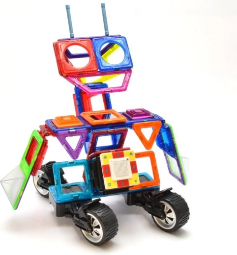 Entdecken Sie das kreative magnetische Konstruktionsset MAGFORMERS mit 40 Teilen und bauen Sie fahrende Roboter, Buggys, Lastwagen und Raumfahrzeuge. Dank Magnetelementen, drehbaren Fahrgestellen und Bonusmodulen (Audiomodul und Battery Pack) genießen Sie viele Licht- und Soundeffekte. Breite Räder, verstellbare Arme mit Scharnieren und die Kompatibilität mit GEOMAG erweitern die Konstruktionsmöglichkeiten und fördern Kreativität sowie Feinmotorik.