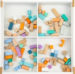 Die Tischplatte kann sowohl als kreativer Raum zum Gestalten als auch zur Aufbewahrung von Spielsachen genutzt werden.