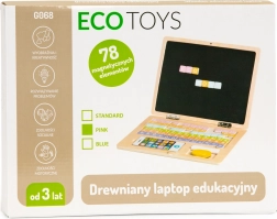 Holz-Laptop ECO TOYS für Kinder bietet eine unterhaltsame Kombination aus Spiel und Lernen. Mit diesem multifunktionalen Spielzeug können Kinder ihre Kreativität mit magnetischen Buchstaben und Zahlen entwickeln, während sie mit einer schwarzen Tafel spielen.