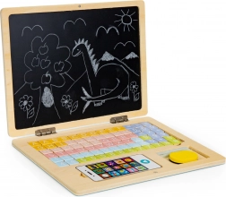 Der Holz-Laptop ECO TOYS ist ein ideales Werkzeug für kleine Künstler und neugierige Denker. Dieses multifunktionale Werkzeug bietet sowohl eine schwarze Tafel zum Schreiben mit Kreide als auch ein magnetisches Brett zur Zusammensetzung von Wörtern und Zahlen. Es ist eine großartige Möglichkeit, bei Kindern Kreativität und Geschicklichkeit beim Erlernen der Grundlagen des Lesens und der Mathematik zu fördern.