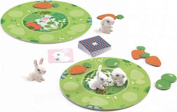 Kleine Ernte von DJECO ist das ideale erste Gesellschaftsspiel für kleine Spielerinnen und Spieler. Die Kinder versuchen, 3 Häschen, 3 Karotten- und 3 Erbsen-Chips zu sammeln und müssen dabei auf den Fuchs achten. Das Spiel fördert Feinmotorik, Zählen und Geduld und entwickelt zugleich Teamarbeit sowie die Fähigkeit, Regeln einzuhalten.