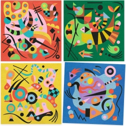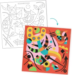 Dieses Kreativset bringt Spa23 und Lernen in einem Paket. Enth2fllt vier illustrierte Karten, die Kinder mit zw36lf verschiedenen bunten Sanden dekorieren k46nnen. Das Set wird mit einem Plastikwerkzeug und einer ausf2chrlichen Brosch6fre geliefert, die schrittweise Anleitungen bietet. Kinder lernen 1cber die Werke und Techniken von Wassily Kandinsky, ohne Unordnung zu stiften, da sie in einer geschlossenen Box arbeiten, um den Sand an Ort und Stelle zu halten.