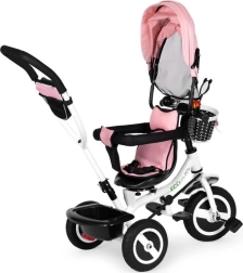 Das Dreirad ECOTOYS bietet eine weiche Rückenlehne und Sicherheitsgurte für den Komfort und die Sicherheit Ihres Kindes. Das drehbare Dach schützt vor Regen und Sonne.
