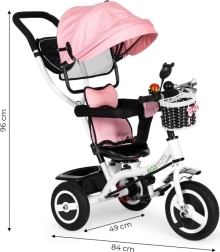 Entdecken Sie das Dreirad ECOTOYS, das Sicherheit und Komfort für Ihr Kind bietet. Eine weiche Rückenlehne, Sicherheitsgurte und Bügel gewährleisten ein bequemes und sicheres Sitzen. Das drehbare Dach schützt vor schlechtem Wetter und der drehbare Sitz ermöglicht einfaches Einsteigen.