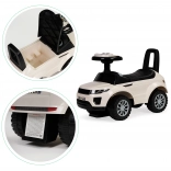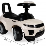 Die praktische Staubox unter dem Sitz fasst kleine Spielsachen oder Reise-Schätze. Spezielle Schutz-“Füße“ gegen Umkippen an Vorder- und Hinterachse verhindern ein Kippen beim Anfahren und Anhalten. Das Rutschauto erfüllt die Normen CE, EN71 und hat eine Tragfähigkeit von 27 kg – es wächst also mit Ihrem Kind mit.