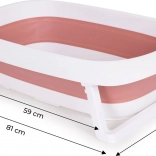 Die Wanne lässt sich in wenigen Augenblicken auf- und zusammenklappen. Nach dem Einklappen der Füße hat sie ein flaches Profil, sodass sie sich leicht verstauen oder mit in den Urlaub nehmen lässt.