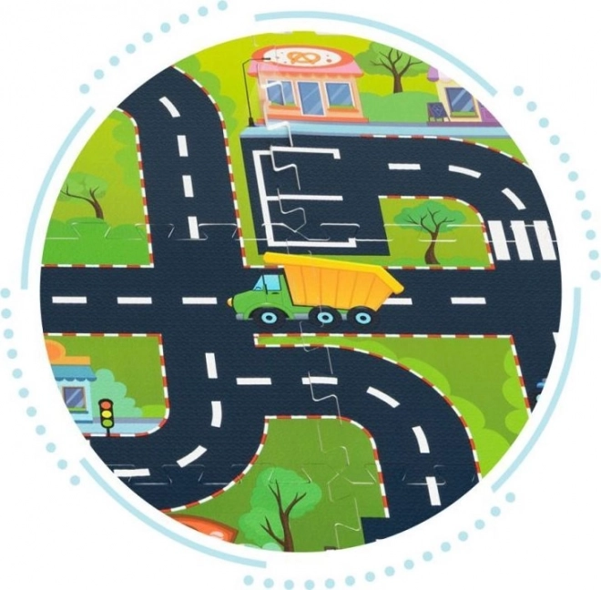 Detailreicher Druck von Straßen, Kreuzungen und Gebäuden fördert die Vorstellungskraft und entwickelt Motorik sowie Raumwahrnehmung der Kinder.