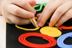 Elastische Kordeln lassen sich bequem formen und haften auf dem Board. Sie fördern Griffkraft, Auge-Hand-Koordination und Präzision der Bewegungen beim Legen von Mustern.