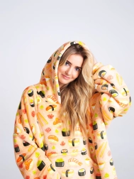 Cozy Noxxiez Hoodie-Decke mit Kapuze, Sushi – Oversize tragbare Decke