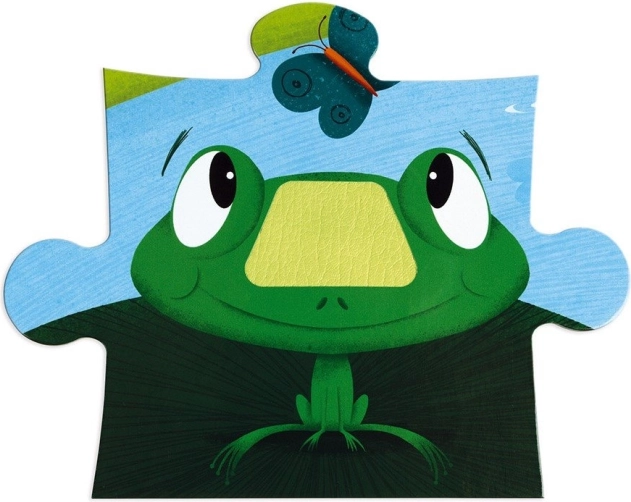 Kinderpuzzle von JANOD mit Tiermotiven vom Bauernhof. Einige Teile haben eine spezielle Oberflächenbehandlung – eine Textur, die auch für echte Tiere charakteristisch ist. Das Puzzle fördert logisches Denken, Aufmerksamkeit und Gedächtnis der Kinder. Mithilfe des Puzzles lernen sie Farben, Formen und Objekte zu erkennen, die Handmotorik wird entwickelt und Kinder lernen, die Beziehung zwischen Teilen und dem Ganzen zu verstehen. Dank der speziellen Elemente am Puzzle lernen Kinder, verschiedene Oberflächen durch Tasten wahrzunehmen. Maße des zusammengesetzten Puzzles ca. 65 × 50 cm