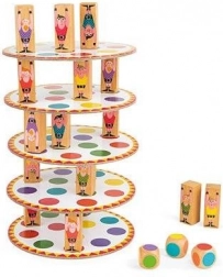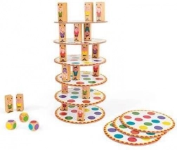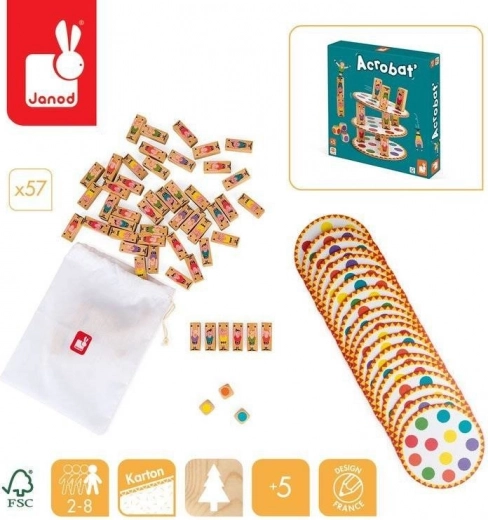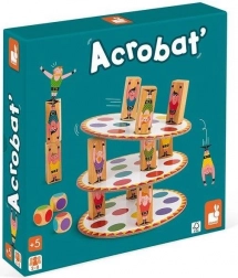 Wem fällt der Turm zuerst um? Ein unterhaltsames Gesellschaftsspiel für Kinder zur Verbesserung ihrer Fähigkeiten. Würfelt und platziert eure Akrobaten strategisch, um den höchstmöglichen Turm zu bauen. Die erste Person, deren Turm fällt, verliert! Das Spiel fördert: – Geschicklichkeit und Motorik – strategisches Denken – Konzentration. Das Spiel enthält 20 Kartonunterlagen (10,5 × 10,5 cm), 57 Holzchips und 3 Würfel. Geeignet für Kinder ab 5 Jahren.