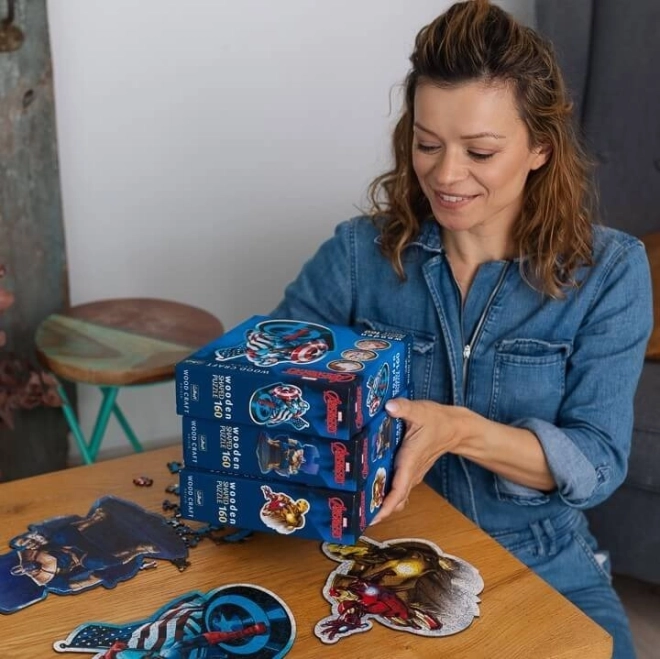 Das Holzpuzzle MARVEL Heroes bietet dank unregelmäßiger Teile und spezieller Figurensilhouetten, die eine Bonus-Herausforderung verbergen, ein originelles Puzzleerlebnis. Jedes Teil hat auf der Rückseite ein dekoratives Muster, das dem Puzzeln eine ästhetische Note verleiht.