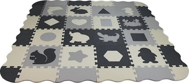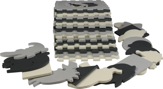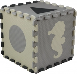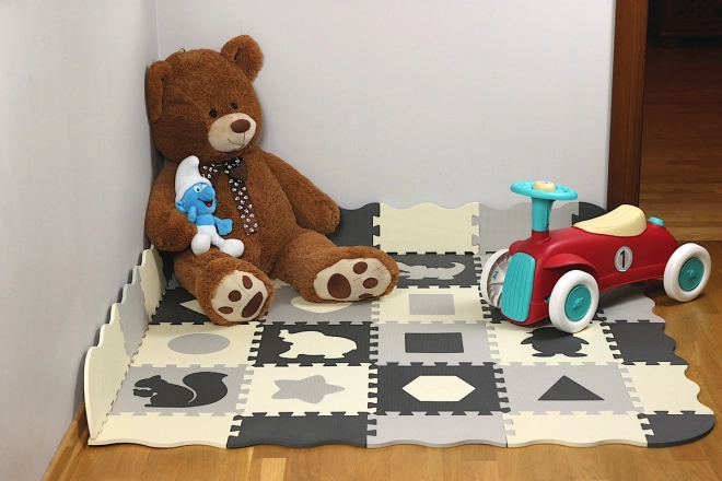Diese grau‑cremefarbene Schaumstoff-Puzzlematte verwandelt den Boden in einen gemütlichen und sicheren Spielbereich. Herausnehmbare Mittelteile mit Tieren und geometrischen Formen fördern die Feinmotorik und Lernen durch Spiel. Dank der Stärke von 0,9 cm dämpft sie Stöße und Geräusche und isoliert gegen Kälte.