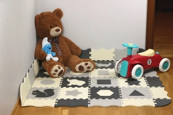 Die Stärke von 0,9 cm federt angenehm, dämpft Stürze und Geräusche und isoliert gegen kalte Böden – ideal für Kinder- oder Wohnzimmer.