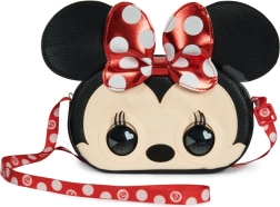 präsentieren die interaktive Minnie Maus Tasche von Disney! Diese einzigartige Tasche reagiert auf Berührungen, zwinkert, und kann Ihnen sogar einen Kuss schicken. Hergestellt aus Materialien wie Kunstleder und Samt, ist sie mit der charakteristischen roten Schleife mit weißen Punkten und auffälligen, bezaubernden Augen verziert.