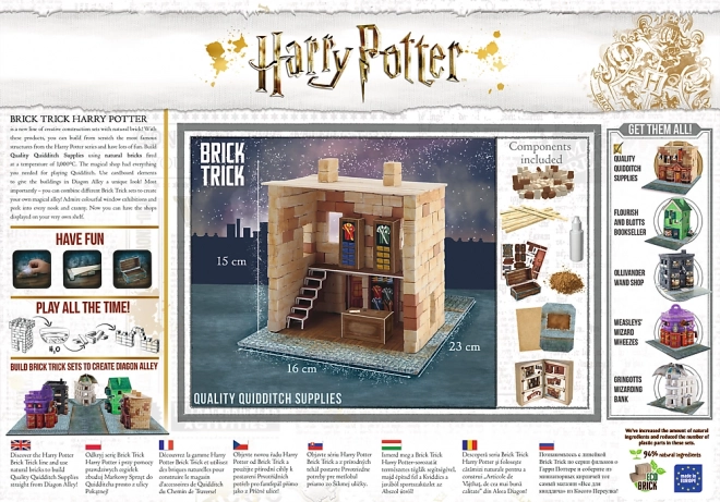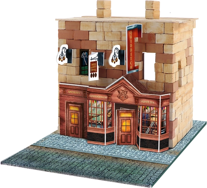 Bauen Sie Ihr eigenes Geschäft für erstklassige Quidditch-Bedarf aus der beliebten Serie Brick Trick Harry Potter. Dieses Set enthält 210 Stücke aus natürlichen Ziegeln und Holz, ideal für junge Baumeister ab 7 Jahren.