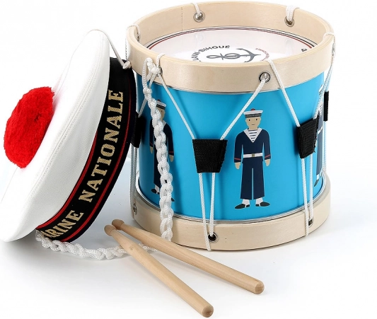 Diese Trommel entstand in Zusammenarbeit mit der französischen Marine, was sich in authentischen Details und der hochwertigen Verarbeitung widerspiegelt. Sie ist für Kinder ab 3 Jahren geeignet und wird dank des angenehmen Klangs und der ergonomischen Schlägel sowohl Einsteiger als auch kleine Musikfans begeistern.