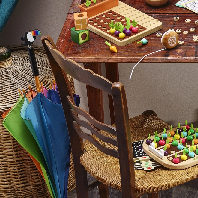 Die originelle Knopfspitze in Tukanform verleiht dem Regenschirm Persönlichkeit und motiviert Kinder, ihn mit Freude zu tragen.