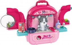 Realistisches Zubehör: Das Set enthält eine Schüssel, Fläschchen und andere Kleinigkeiten, die für die Einrichtung einer Tierarztpraxis benötigt werden.