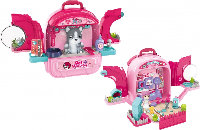 Das tragbare Tierkrankenhaus ermöglicht es Kindern, ihren Lieblingsstofffreund überall zu pflegen. Verschiedene Accessoires bieten ein realistisches Erlebnis.