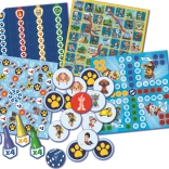 Genießen Sie das Spiel mit der ganzen Familie dank der kompletten Ausstattung, die doppelseitige Spielbretter, einen Würfel und Spielfiguren umfasst.