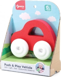 Ein lustiges und sicheres Schaumstoffauto mit einer Länge von 15,5 cm und weicher Ausführung für die ersten Spielmomente. Es verfügt über freilaufende Räder und ist zum Kauen geeignet, sodass es auch bei Zahnungsschmerzen Linderung verschafft.
