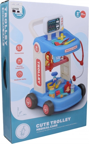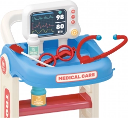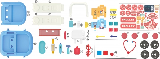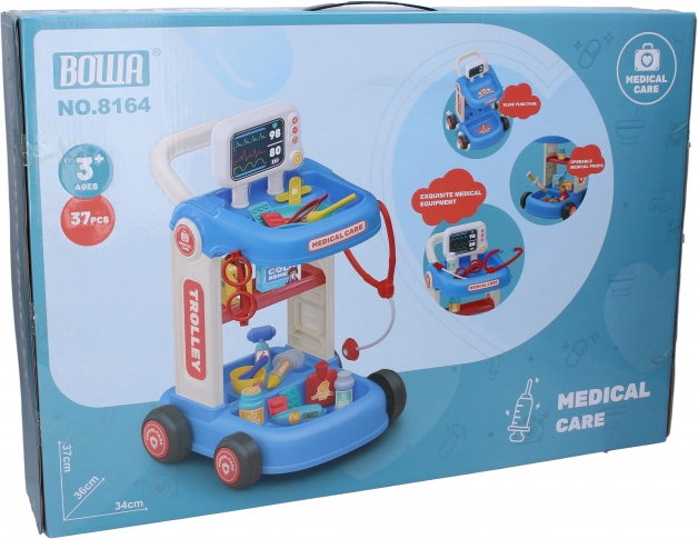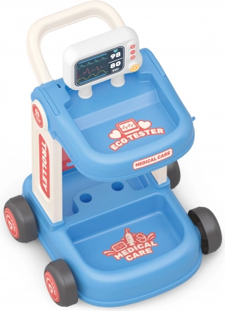 Medizinwagen mit Zubehör bietet kleinen Ärzten alles, was sie für ihr Spiel benötigen. Er ist mit Rollen für einfache Beweglichkeit ausgestattet.