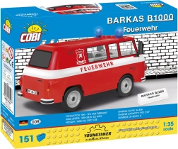 Der Barkas B1000 war ein ikonischer Lieferwagen und Mikrobus, der von 1961 bis 1991 in der ehemaligen DDR produziert wurde. Die Variante Feuerwehr wurde an die Bedürfnisse der Feuerwehren angepasst. Dieser COBI‑Bausatz fängt den Charakter des historischen Fahrzeugs im Maßstab 1:35 getreu ein und sieht dank hochwertiger Drucke auch ohne Aufkleber großartig aus.