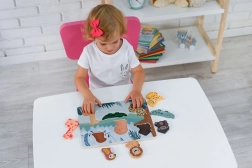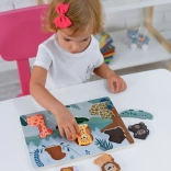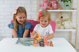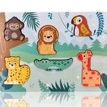 Das Holz 3D Puzzle Safari Tiere ist ein ideales Spielzeug für Kinder ab 12 Monaten. Es hilft, kognitive Fähigkeiten zu entwickeln, indem Kinder verschiedene Tierformen in die passenden Ausschnitte setzen.