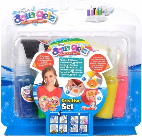Entdecken Sie das Kreativset Aqua Gelz für Kinder, um weiche 3D-Figuren in zahlreichen Farben zu erstellen. Inklusive 7 bunter Gläser und 4 Formen für ein schnelles und magisches Kreativerlebnis.